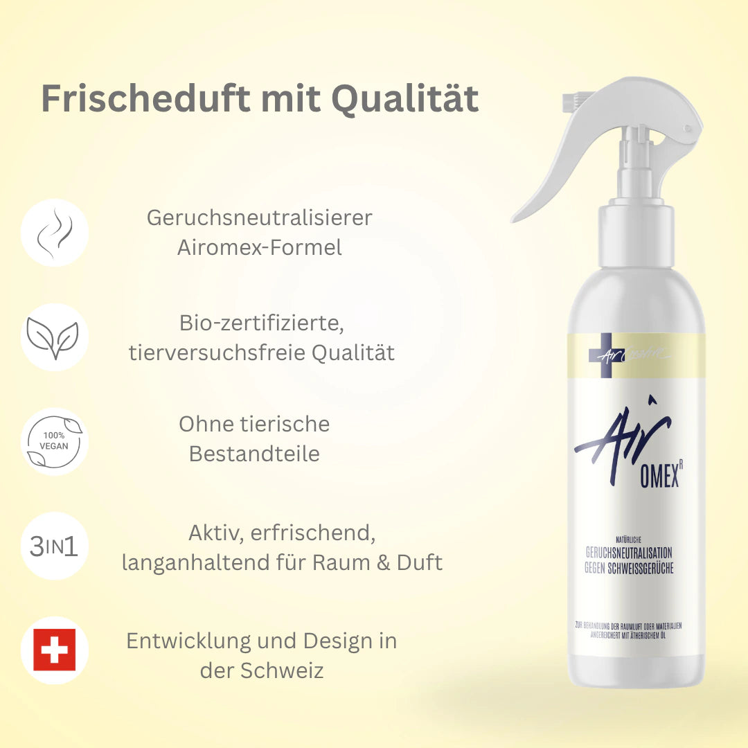 Erlebe mit Airomex® spürbar leichtere Luft und neutrale Textilien – schnell, diskret, wirksam.
