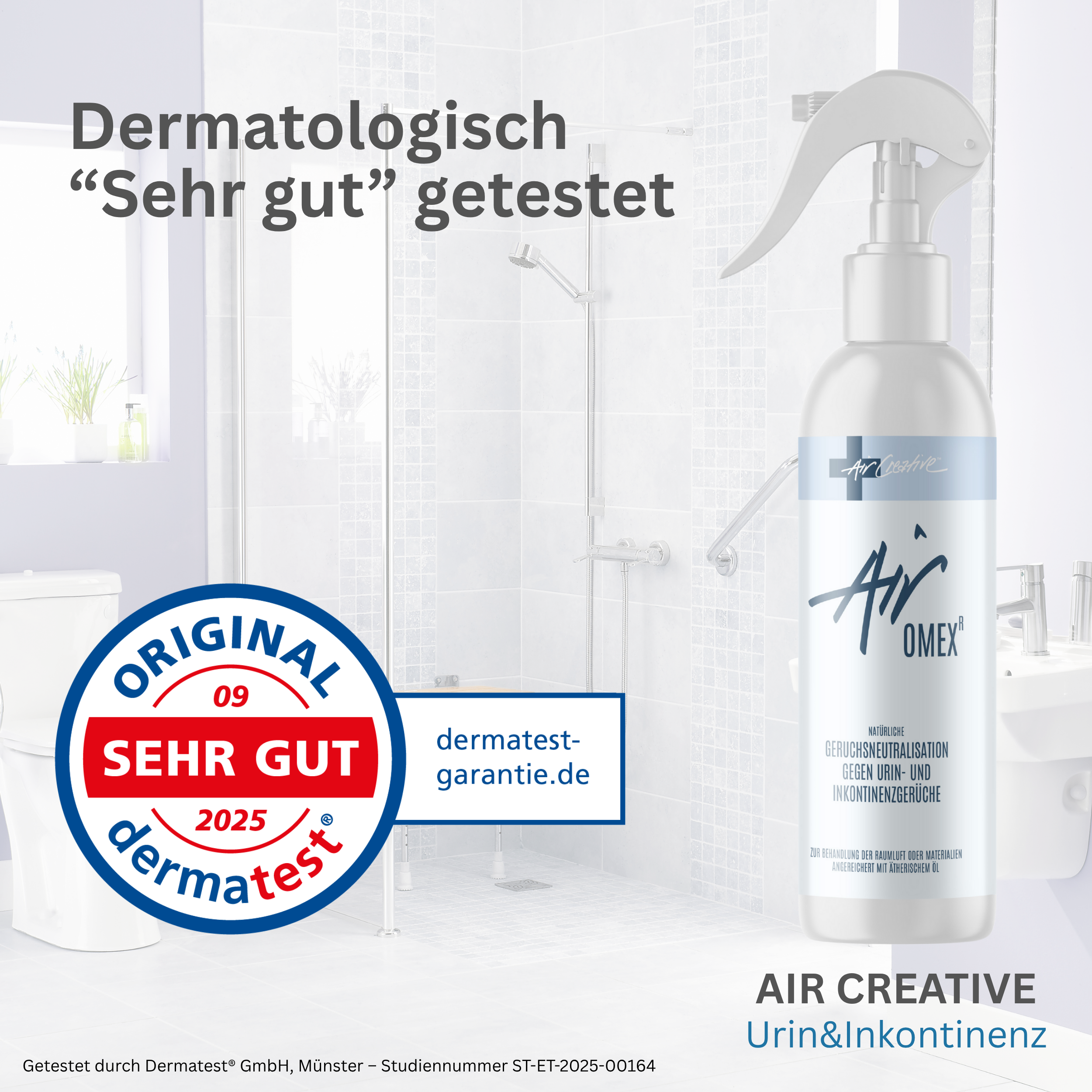 Airomex® "Urin & Inkontinenz" wurde mittels offener Epikutantestung an 30 Probanden mit diversen Hauttypen unter fachärztlicher dermatologischer Kontrolle gemäß internationalen Richtlinien auf Hautverträglichkeit geprüft. Im Testareal traten nach einmaliger Applikation keine relevanten Hautreaktionen auf. Das Produkt wurde klinisch-dermatologisch mit "sehr gut" bewertet und darf als "dermatologisch getestet" deklariert werden (Dermatest® Garantie-Siegel, 09/2025).